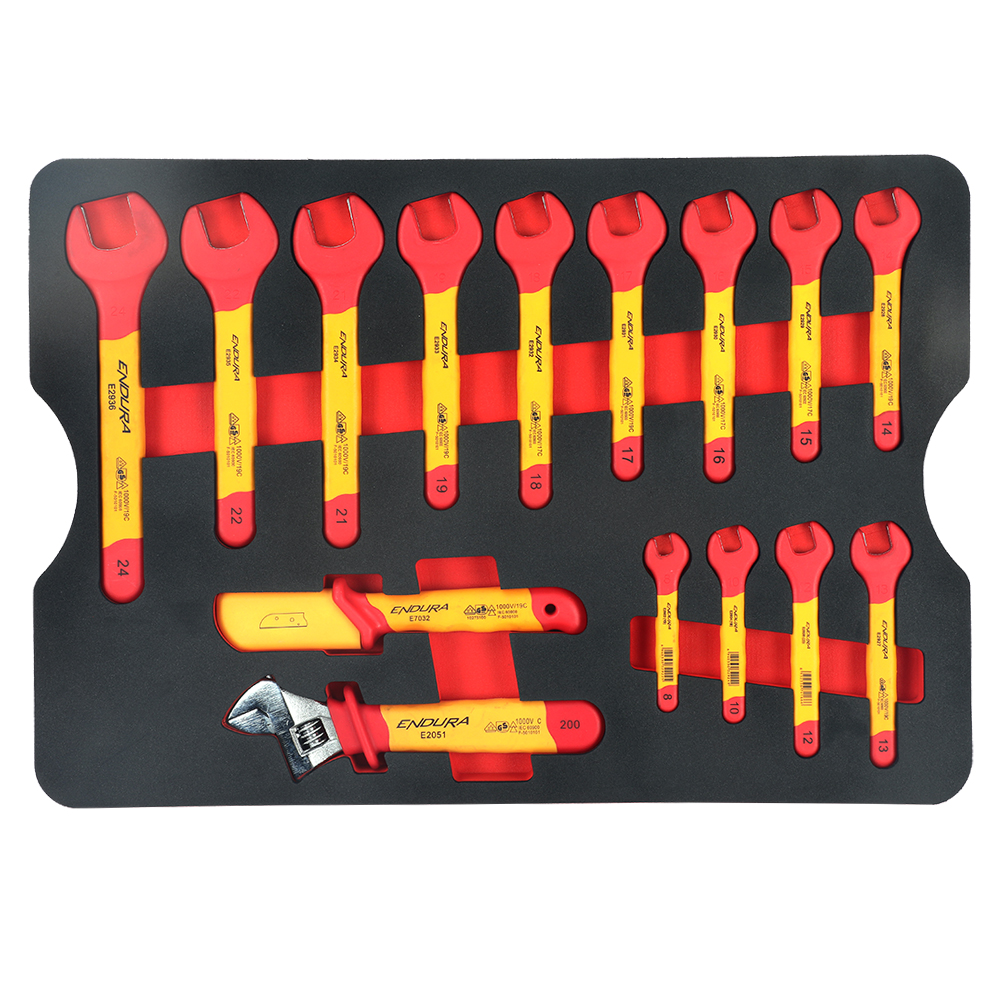 13-VDE Insulated Open-End Wrenches: 8, 10, 12, 13, 14, 15, 16, 17, 18, 19, 21, 22, 24mm